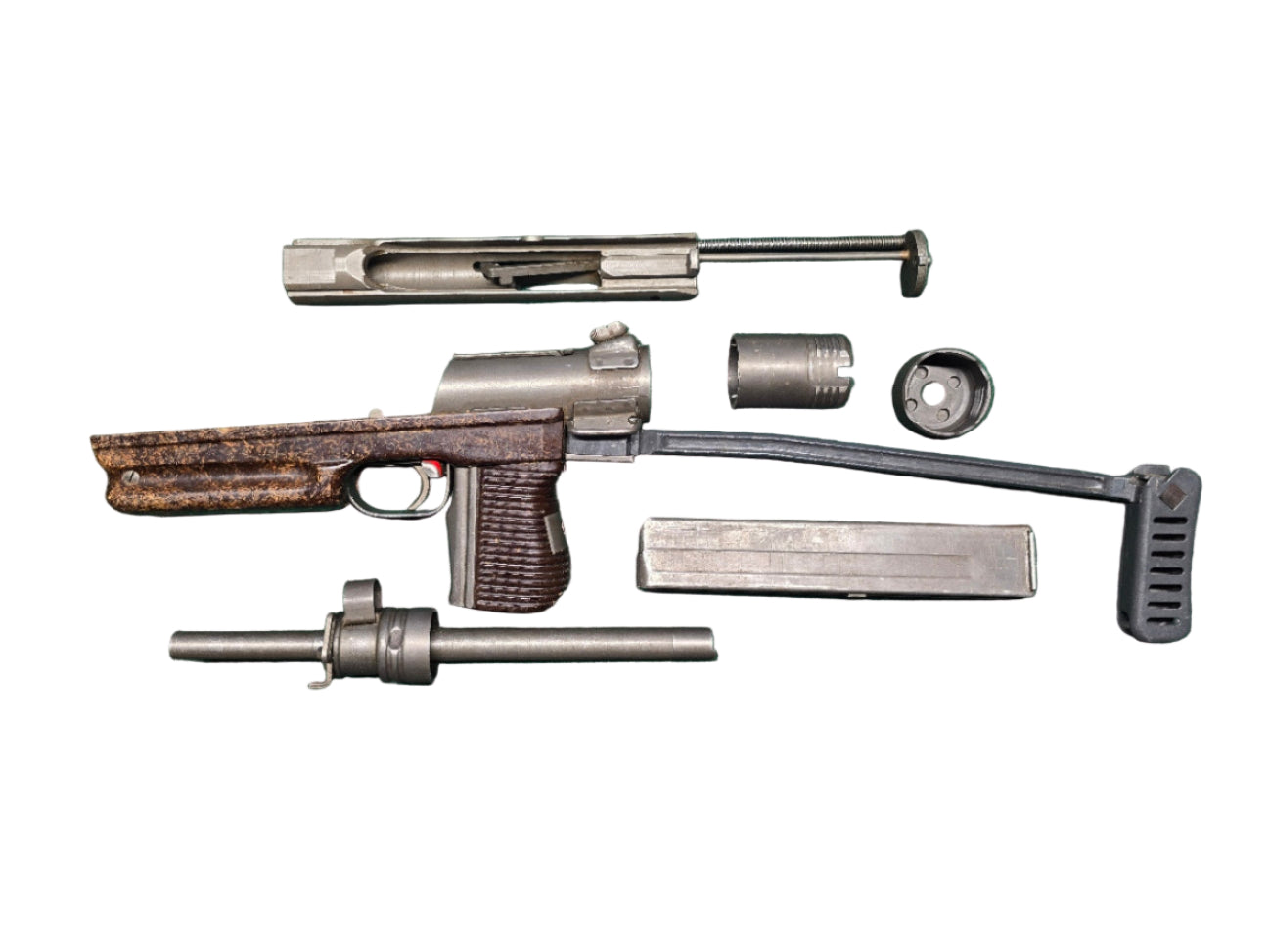 Samopal Vz. or Cz (Česká zbrojovka) model 24 and 26 sub machine gun PARTS KIT. The 24 variant has a wooden stock chambered in 7.62x25 Tokarev. The 26 variant is the same SMG with a folding wire stock. This is also available with selection. These SAW-CUT parts kits are unissued surplus, from the Czech military. The barrels are brand new, chambered in 7.62x25 Tokarev. LIMITED AVAILABILITY. Receiver repair sections and blueprints coming soon.