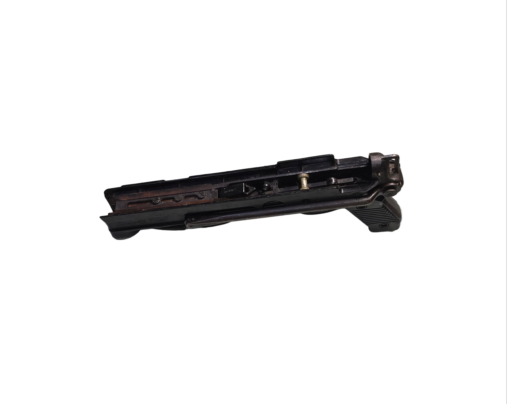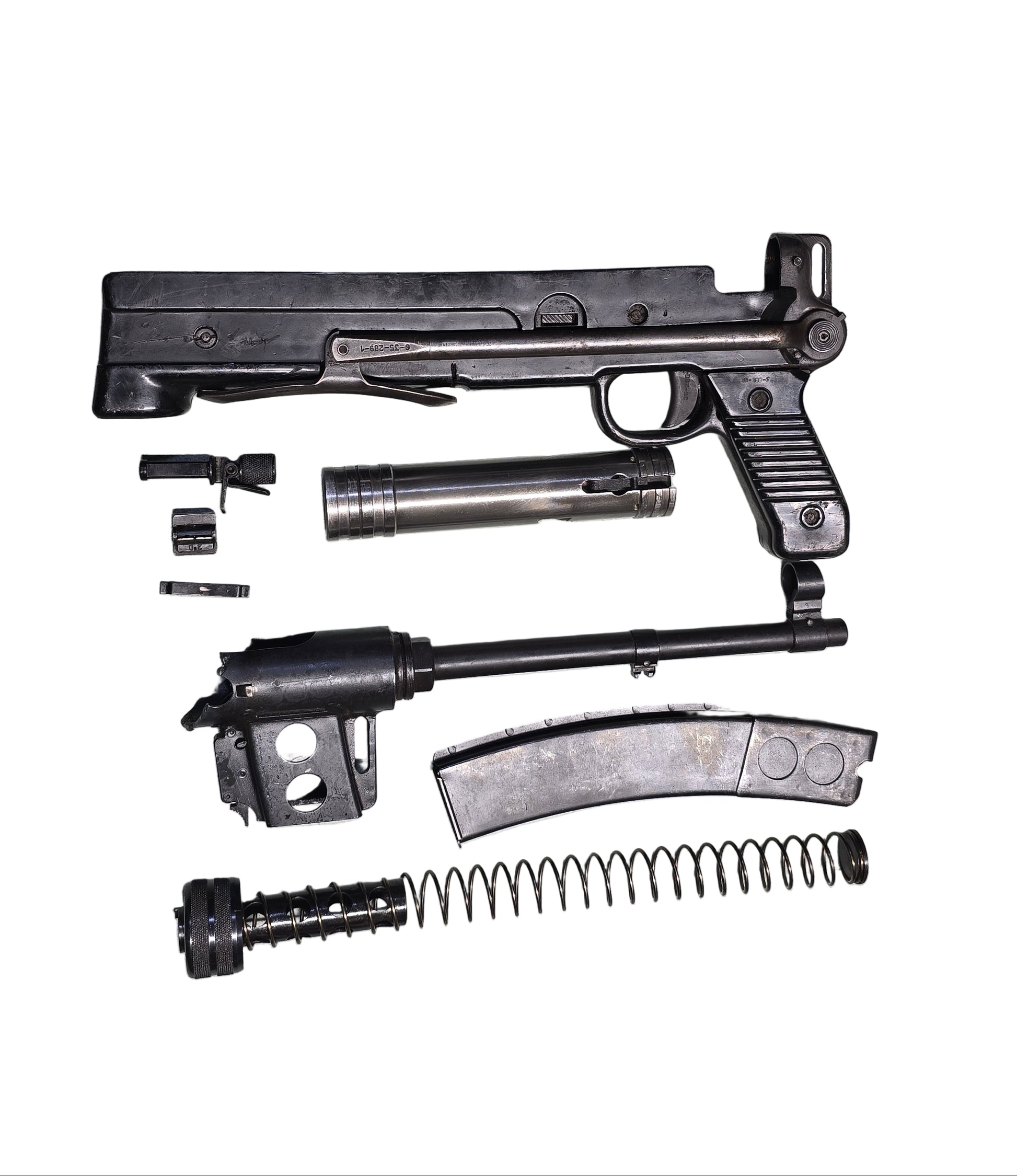 Created by the Former Yugoslav Peoples Army, and later produced by Crvena Zastava. In the now Serbia. Designed from the captured German MP-40 Machine pistol. The Yugo M56 is chambered in 7.62x25 Tokarev. Uses 32-round box magazines and incorporates a bottom folding wire stock.